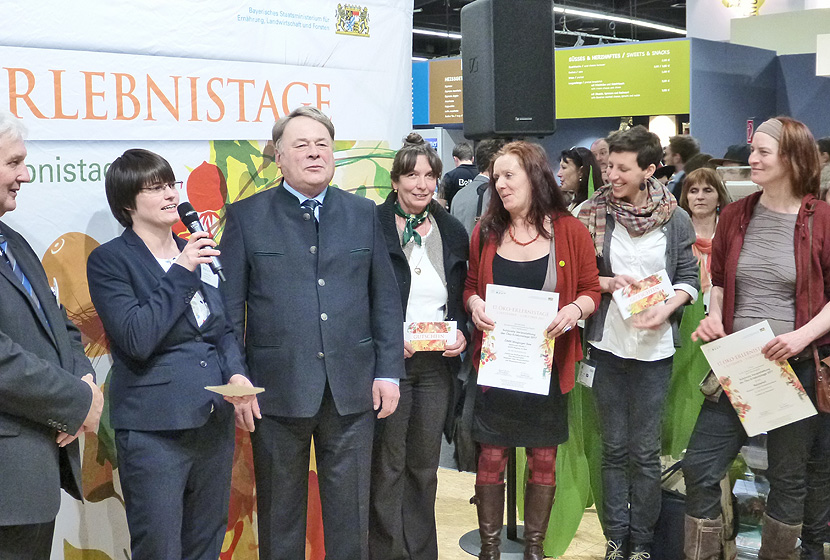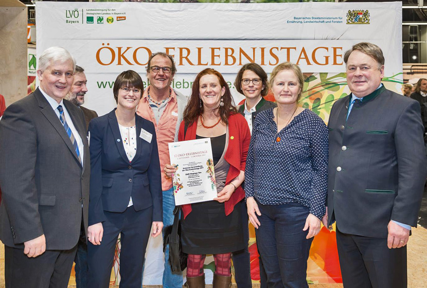 Herausragende Veranstaltungen der Ökoerlebnistage 2017 sind auf der Biofach in Nürnberg, der Weltleitmesse für Bio-Produkte, ausgezeichnet worden. Die Preise überreichten Josef Wetzstein, der Vorsitzende der Landesvereinigung für den ökologischen Landbau in Bayern (LVÖ), und der bayerische Landwirtschaftsminister Helmut Brunner.