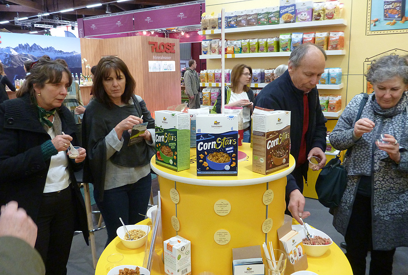 Vor der Prämierung besuchte die Waginger noch den Barnhouse-Stand, um die neuen Müslisorten mit Hafer und Dinkel aus der Ökomodellregion zu testen,Bild von ILE.