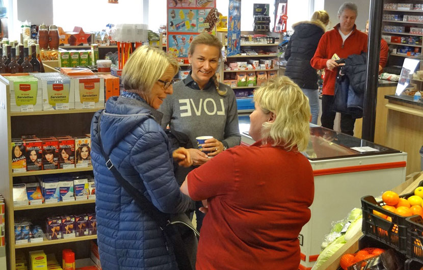 Nahversorgung in Ebersdorf mit Café und Dorfladen; Tachings Bürgermeisterin, Ursula Haas und die Leiterin der Tourist Info Waginger See, Eva Gruber im Gespräch mit der Betreiberin von Café und Dorfladen.